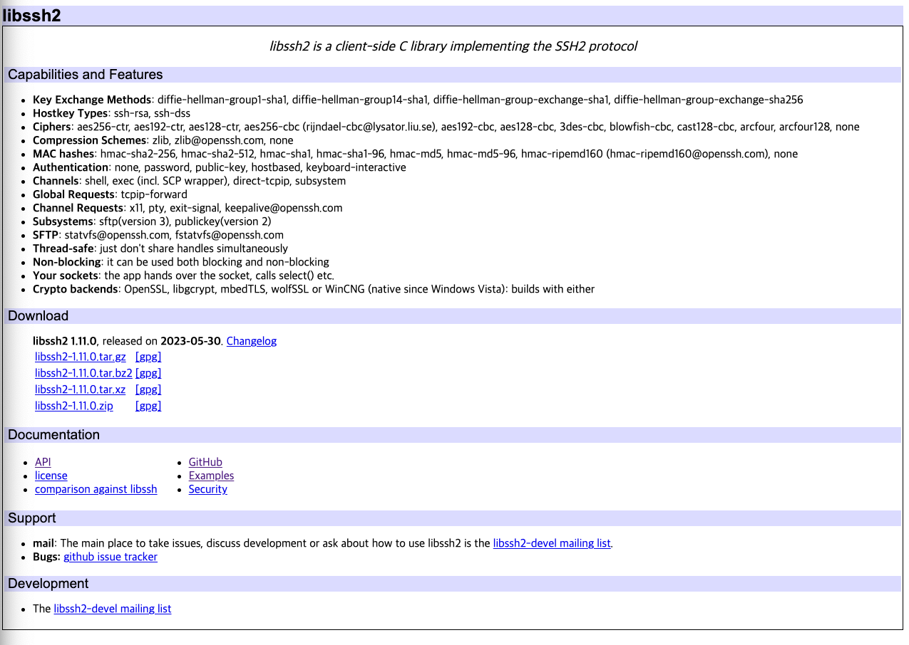 libssh2 library official website (libssh2 라이브러리 공식 홈페이지)