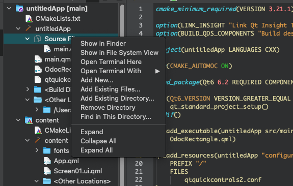 1-3. 생성을 완료하면 CMakeLists.txt에 QML파일이 추가된 것을 확인할 수 있습니다.