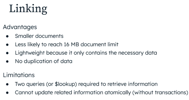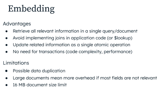 - ex. 게시판 댓글을 한 document에 임베딩해서 저장했다가 갑자기 댓글 수가 폭증하면? 사이트 오류 뿜뿜