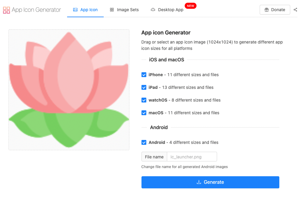 앱 아이콘으로 만들고 싶은 이미지를 가지고 아래 사이트로 들어간다.