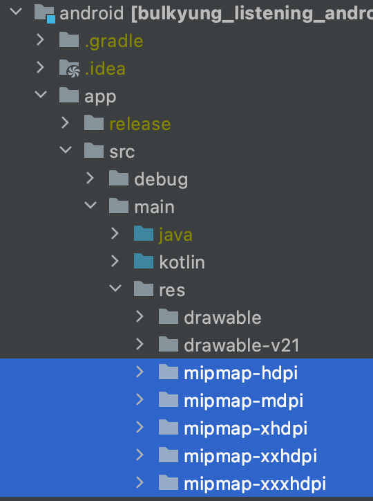 아래와 같이 android/app/src/main/res 디렉토리를 찾을 수 있다.